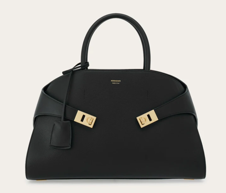 디자인적인 면에서는 마치 팔로 감싸안는 듯한 독특한 형태가 눈길을 끕니다. 비대칭적인 뒷면 구조가 아코디언 쉐입의 측면을 감싸고, 앞면의 골드 간치니 버클로 이어져 세련된 느낌을 줍니다. 내부의 링 잠금장치로 가방 입구를 고정할 수 있어 소지품을 안전하게 보관할 수 있습니다.