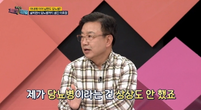 이효정은 "아내가 굉장히 건강한 체질이다. 운동도 잘 하고. 그런데 어느 날 예기치 않게 당뇨병 발병 사진을 보내더라"며 아내가 당뇨병 진단을 받았다고 밝혔다.